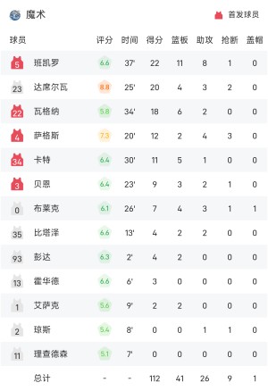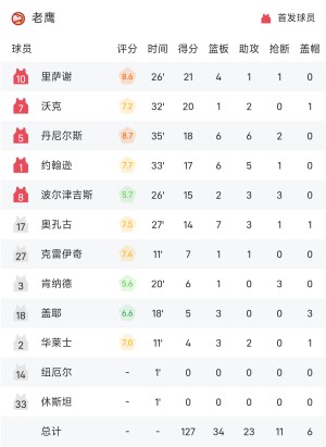 11月05日讯 25/26赛季NBA 常规赛,老鹰对阵魔术。双方全场战罢,老鹰127-112战胜魔术。里萨谢得到21分4板1助率队取胜,班凯罗空砍全场最高的22分11板8助。